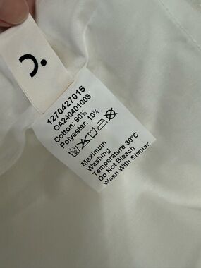Preowned, good condition. Minor flaws: small spot on left front skirt and light snagging in two areas on left side (see last two photos)