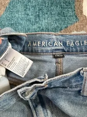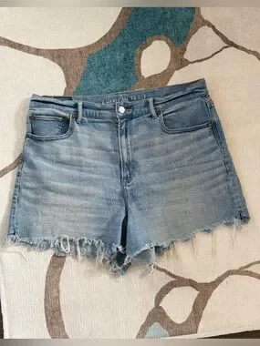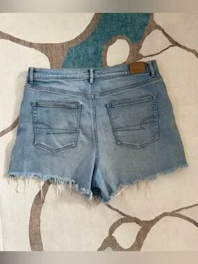 American Eagle Highest Rise ‘90s Boyfriend Denim Jean Shorts- Raw Cutoff Hem. Medium Wash. Great condition. Women’s size 16. Summer ready!