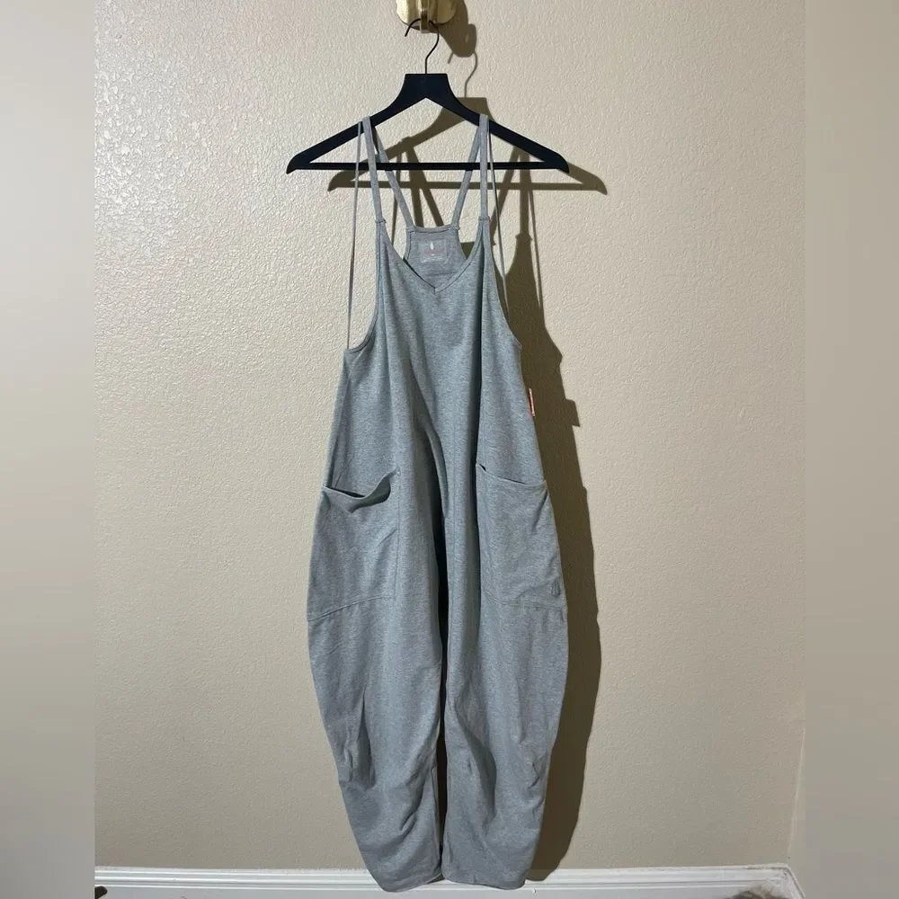 Stylish gray jumpsuit. Relaxed fit with side pockets. Perfect for casual wear.