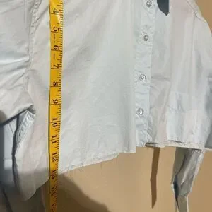 Chic cropped blouse. Button-up front. Classic collar design. Perfect for casual wear.