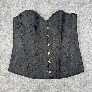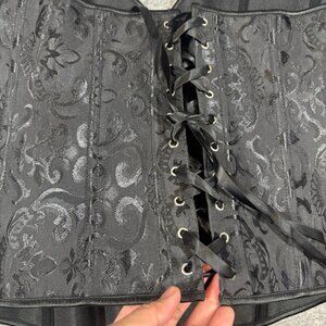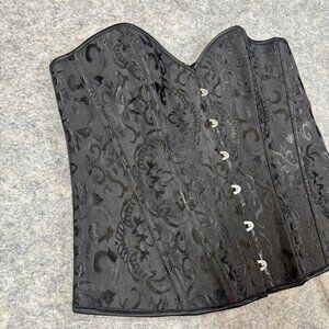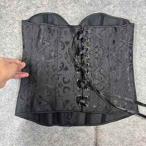 Black Brocade Corset Bustier XL Lace Up Back Boned Gothic Waist Cincher Top
