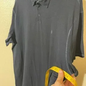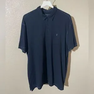 Stylish dark blue polo with subtle logo. Ideal for versatile wear.