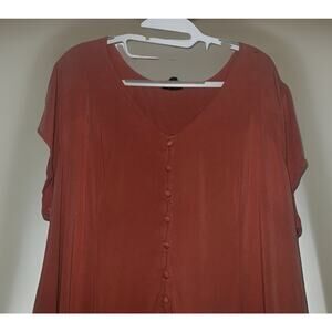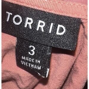 The Torrid Top Women's 3XL Orange Lace Up Corset Back Blouse is a stylish and comfortable addition to any woman's wardrobe. This lightweight blouse features a V-neckline, button-down collar, and ruffle accents for a trendy look. Made from a blend of rayon and spandex, this blouse is designed to be slimming and stretchy, making it perfect for all seasons. Whether for a casual occasion or dressed up, this blouse is a versatile and fashionable choice for plus size women. Easy to care for with machine washable instructions, this blouse is a great addition to any closet.