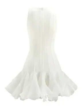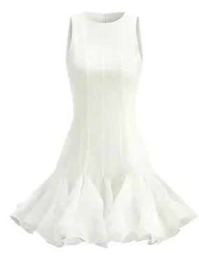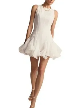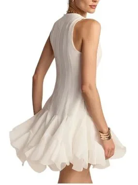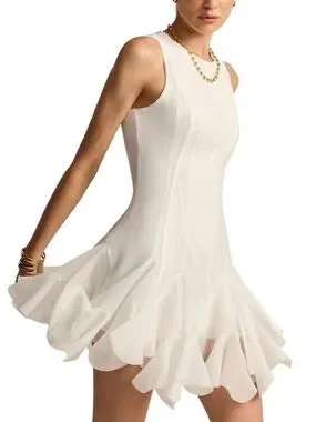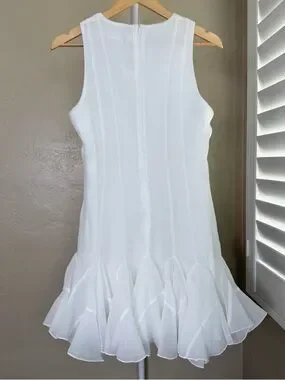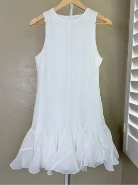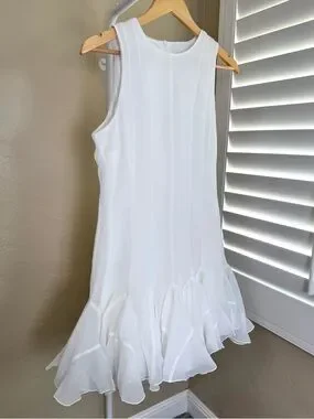 Commense Semi-Sheer Ruffled Hem Mini Dress White NWT XS