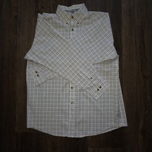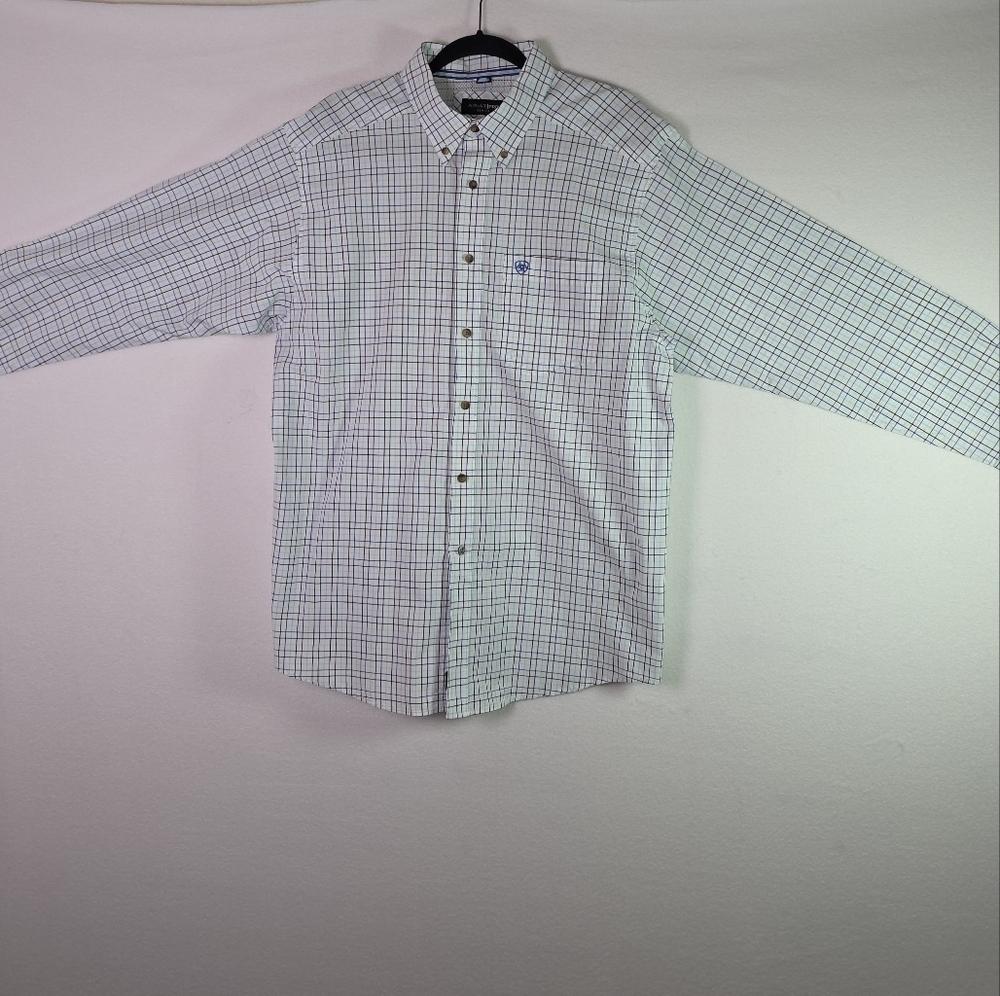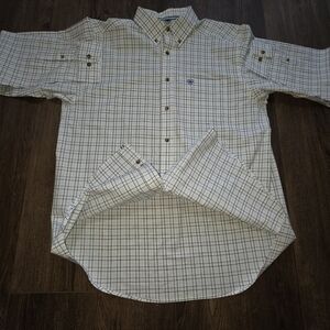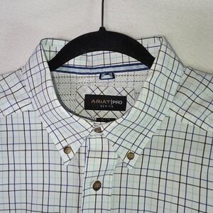 Ariat button-up shirt, Ariat Pro Series, western plaid shirt, men’s rodeo shirt, performance work shirt, Ariat ranch shirt, moisture-wicking shirt, Ariat XL shirt, men’s casual western shirt, long sleeve Ariat, cowboy style shirt