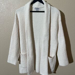 Stay warm and stylish with this cozy cream open-front sweater. Perfect for layering, it offers comfort and elegance for any occasion.
