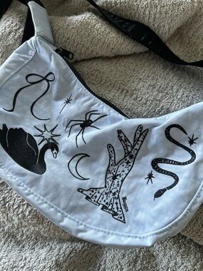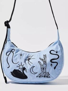 NWT Baggu Small Nylon Crescent Bag - Embroidered Ballet Icons light blue