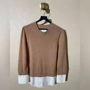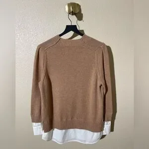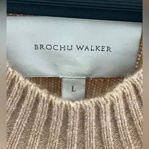 Brochu Walker Tan Crewneck Sweater with White Hem