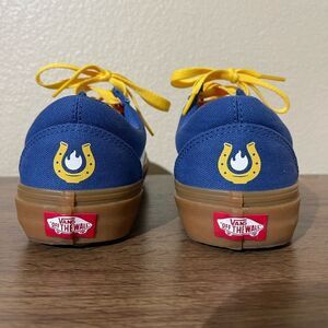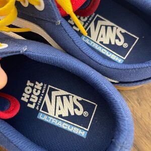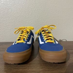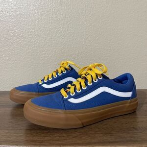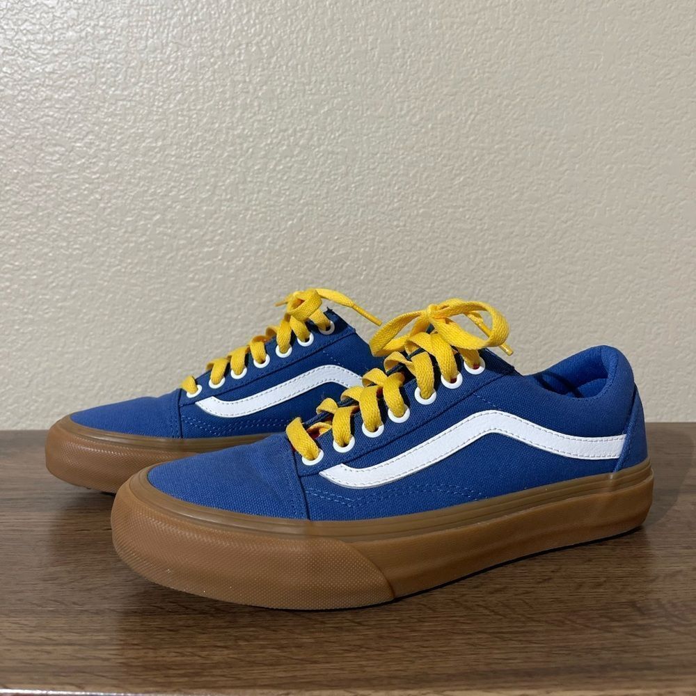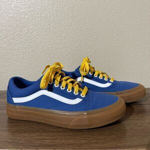 Vans sneakers in blue with striking yellow accents. Comfortable and stylish.