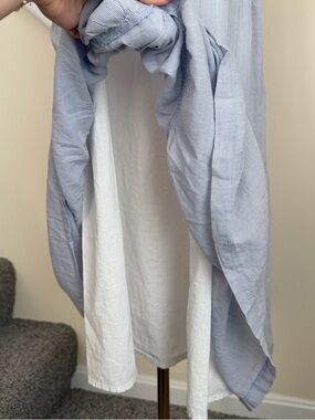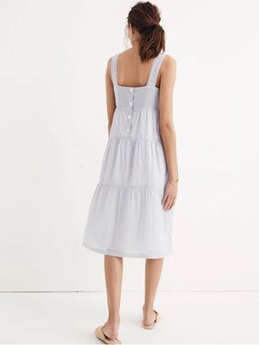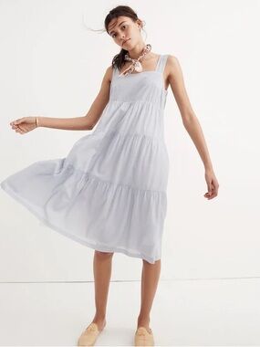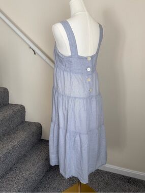 Madewell Striped Tiered Waistless Flowy Midi Sundress/ Dress in Blue & White. A light-as-air seamed dress in subtle blue and white stripes. With a flattering shape and easy midi length, this one can go from outdoor get-togethers to weekend picnics. Perfect condition. Size 6.