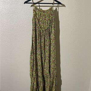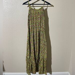 Chic and flowy maxi dress with floral pattern. Features a relaxed fit and delicate straps. Ideal for warm weather outings.