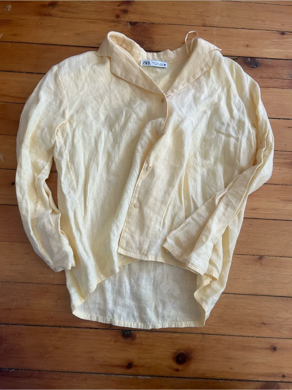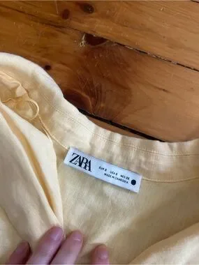 Zara yellow linen button down long sleeve shirt small