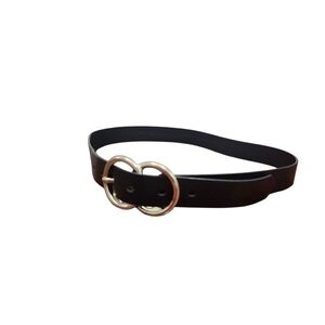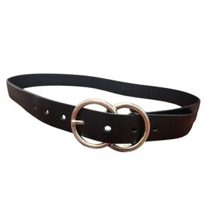 Halogen Black Genuine Leather Belt for Women Size S Double Ring Gold Buckle Minimalist Style