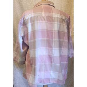 ▪︎DESCRIPTION: Pink and white plaid button up shirt with 3/4 length sleeves