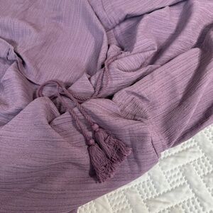 Has drawstring that ties under bust with tassels