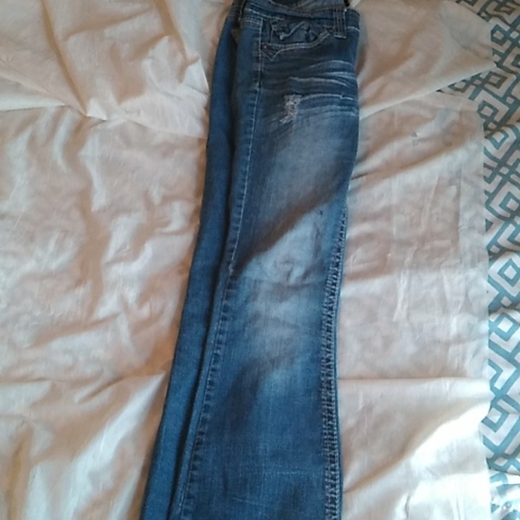 Cute bootcut jeans size 3-4, moderately distressed look. 29 inseam waist 15inches and hips 18inches