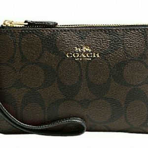 **Sold** Authentic Coach brown with black signature "C" double zip Wristlet. 6 1/2 (L) × 3 3/4 (H) Small but big enoygh to hold your phone, credit cards, money and lip gloss. Pet / smoke free home