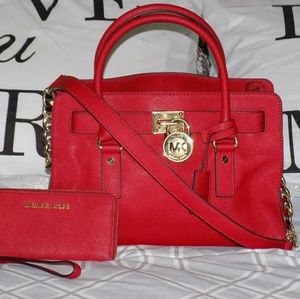 Sold Authentic Red Michael Kors Hamilton& wristlet