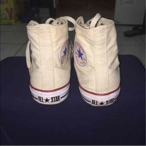 Beige converse sneakers. Fairly new, some marks which are removal. Can be washed to look even newer. Very good condition, very comfortable. Men's size 6, women's 8. If you're not aware converse run half a size larger than your regular size so take that into consideration when looking at the size of the shoe.