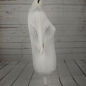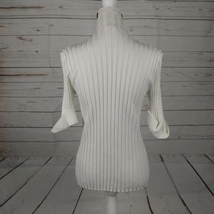 Belldini White Rhinestone Zipper Ribbed Long 3/4 Sleeve Women's Sweater Size Large. Shoulder to hem measures 24 inches, bust measures 30-32 inches, waist measures 26 inches (all measurements laying one side flat).