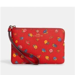 Sold COACH Corner Red Zip Wristlet With Floral Print