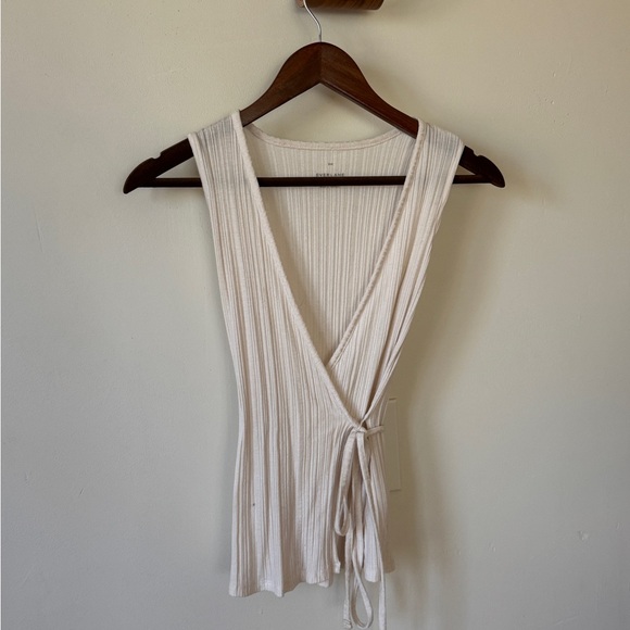 Chic ribbed wrap blouse. Soft and stylish. Ideal for versatile wear.