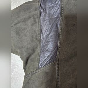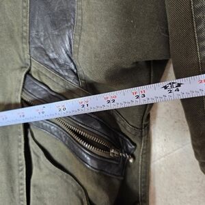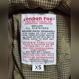 This vintage London Fog jacket is a stylish addition to any man's wardrobe. Made from a combination of denim and leather, it features a short bomber length with a zip snap closure. The olive and brown color scheme gives it a unique and classic look, perfect for those looking to add a retro touch to their outfit. With a size small and regular fit, this jacket is machine washable and easy to care for, making it a practical and stylish choice for everyday wear. Perfect for fans of the 80s theme, this jacket is sure to make a statement.