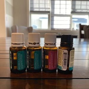 Young Libing peppermint x2, young living Tea Tree & Nature’s Truth eucalyptus oil. 1 full bottle of Peppermint Oil, full bottle of tea tree oil and full bottle of Eucalyptus Oil. Remaining Peppermint oil is 1/3 full.