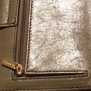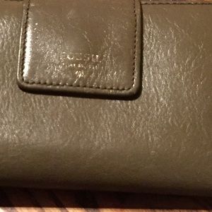 This Fossil Wallet is just right! It's a grayish Tope.The red gives it a nice look when opening. CLASSY FOR SURE!