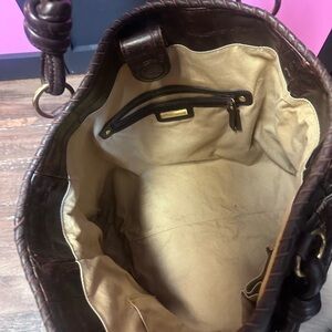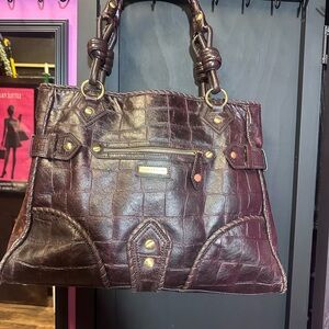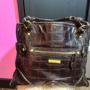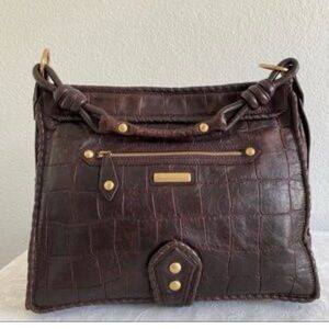 (. Sold ). Isabella Fiore Brown Crocodile Embossed Leather Shoulder Bag,