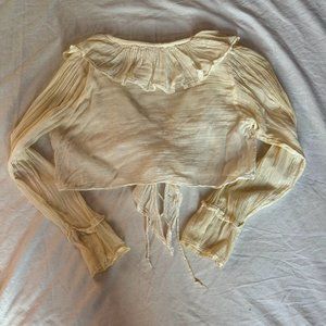 Sold! - Lace-Up Ruffle Trim Long Sleeve Cropped Blouse