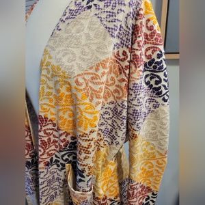 Like New, Gently Used Lularoe Duster. Scroll Print in Purple, Yellow, Blue, Cream, Fuschia and Khaki.