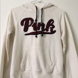 White And Maroon PINK Hoodie. Used A Couple Times But Still In Good Condition. EVERYTHING CHEAPER ON MARCARI. User - Abi.505