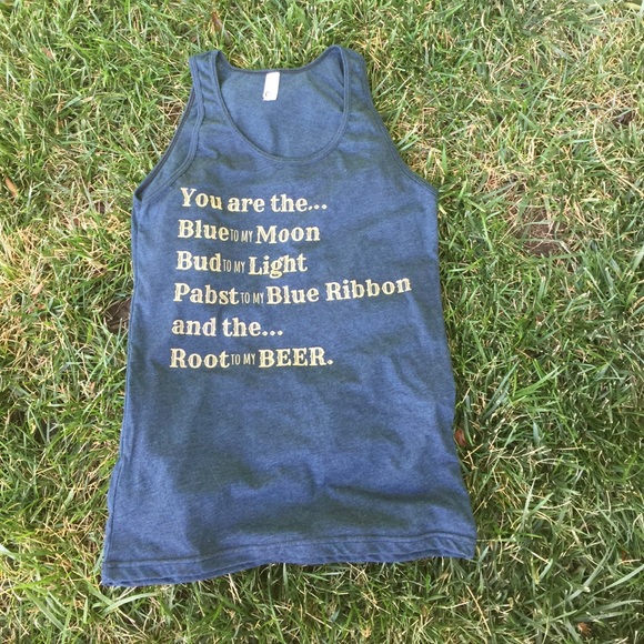 You are the... Blue to my Moon Bud to my Light Pabst to my Blue Ribbon and the Root to my BEER! Hello best beer shirt ever! Printed on American Apparel tank, dark navy blend. Size XL is printed on dark gray blend, we will add a photo upon request. Please do not buy this listing, we will create a custom listing for you. 🍻cheers🍻