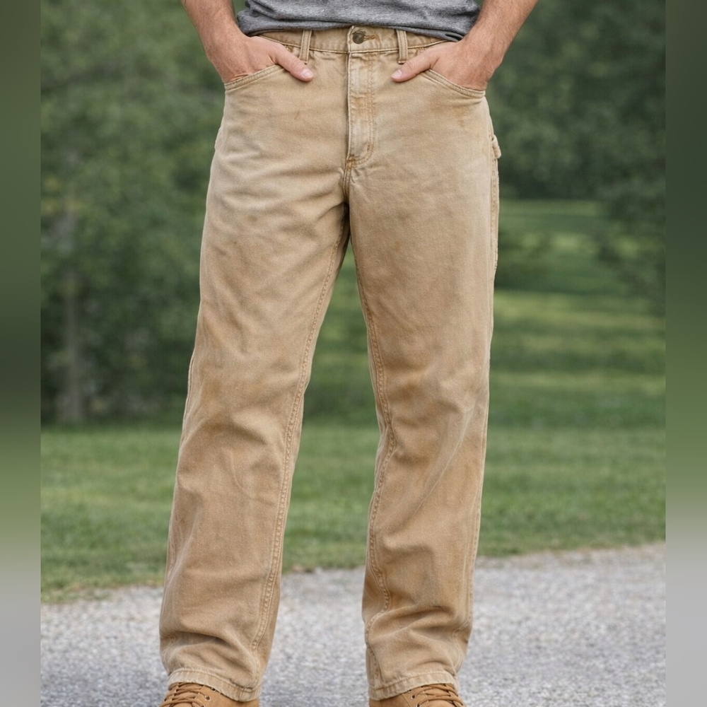 Carhartt Mens Tan Work Pants Durable Canvas sz 30 x 32 Outdoor Farm Construction (H1)