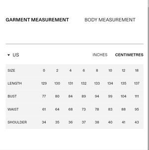 UK 6, 8, 10, 12, 14 / US 2, 4, 6, 8, 10
