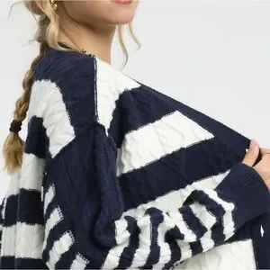 Chic and cozy striped sweater in navy and white. Perfect for layering and adding a stylish touch to any outfit.