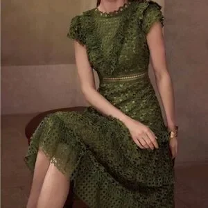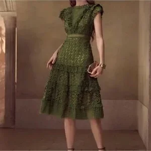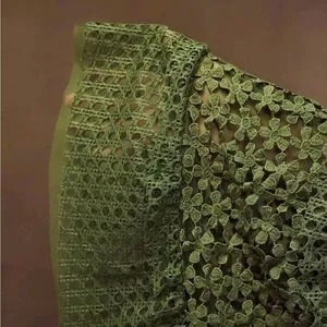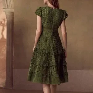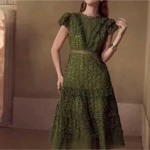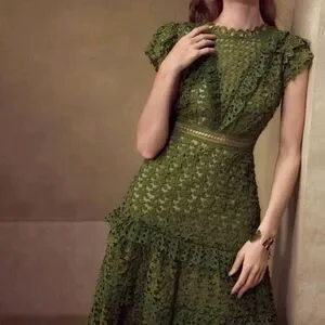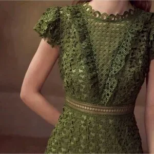 Chic green lace dress with intricate detailing. Perfect for special occasions.