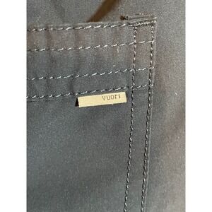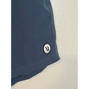 Vuori Kore Shorts in a versatile charcoal blue hue offer the perfect blend of performance and comfort for active lifestyles. Crafted from a breathable, moisture-wicking fabric with four-way stretch, these shorts feature a built-in athletic liner for support and a classic elastic waistband with a contrasting dotted pattern and adjustable drawstring. Designed with a standard fit that falls above the knee, they include convenient side pockets and a secure back patch pocket with a drainage grommet, making them ideal for running, training, or yoga. The signature woven logo patch at the hem and subtle brand tab on the back pocket complete the clean, athletic aesthetic.