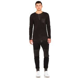Sold Out! COTTON CITIZEN $95 Jagger Long Sleeve Henley in Jet Black Size M