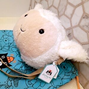 (Sold Out) Jellycat Little Lamb Bag about 7"x7"x2" 40" + Strap Soft & Plush NWT I received this as a gift. I know very little about Jellycats other than they're very desirable and some of them even more so. Posted with some stock photos as well as the actual item.