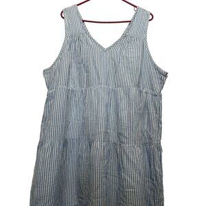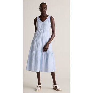 Sold Quince Stripe Gauze Tiered Midi Dress Womens XL Blue White 100% Organic