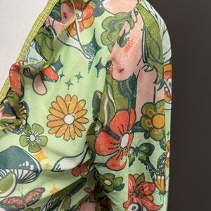 (Sold )ROMWE Green Floral Tie-Front Blouse Size M