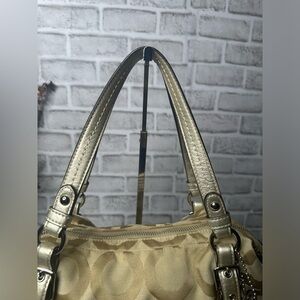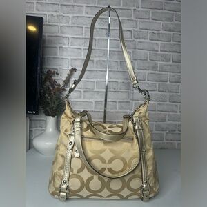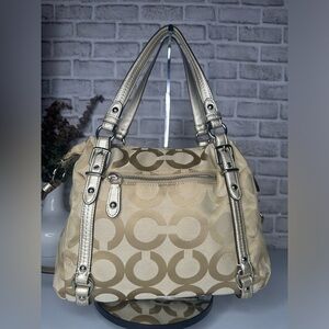 Coach Op Art Alexandra Satchel F15275 Beige Handbag shoulder strap EUC zip close