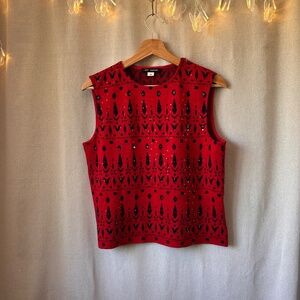 Sold - St. John S Red Sleeveless Top w/ Sequins | Size M