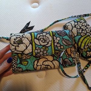 Real, lime green, white, and black small Vera Bradley clutch/wallet along with matching wristlet.