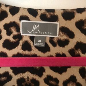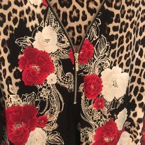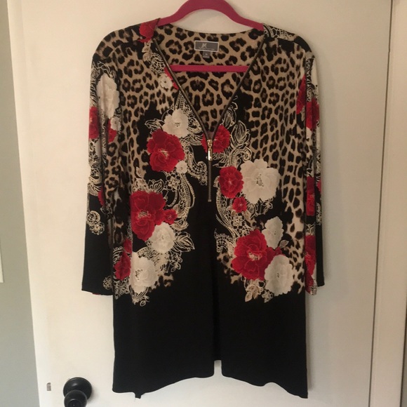 Love the stretchy material. Never warn. Excellent condition - mildly wrinkled from hanging in closet. Cute zipper detail.