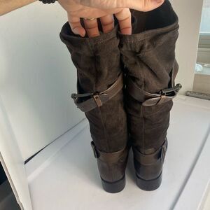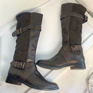 Designer Cole Haan Air Whitney Comfortable Riding Knee High Tall Boots With Buckle Strap, Brown