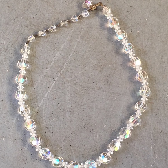 50s Vintage Laguna Crystal Choker Bead Necklace (Wedding, Bridal) in good condition for its age shows off a beautiful light show as soon as the sun hits it absolutely stunning