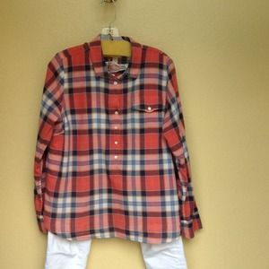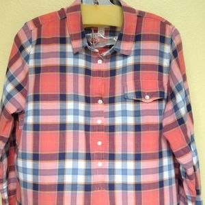 Sold in Bundle Orange/blue plaid "popover" blouse